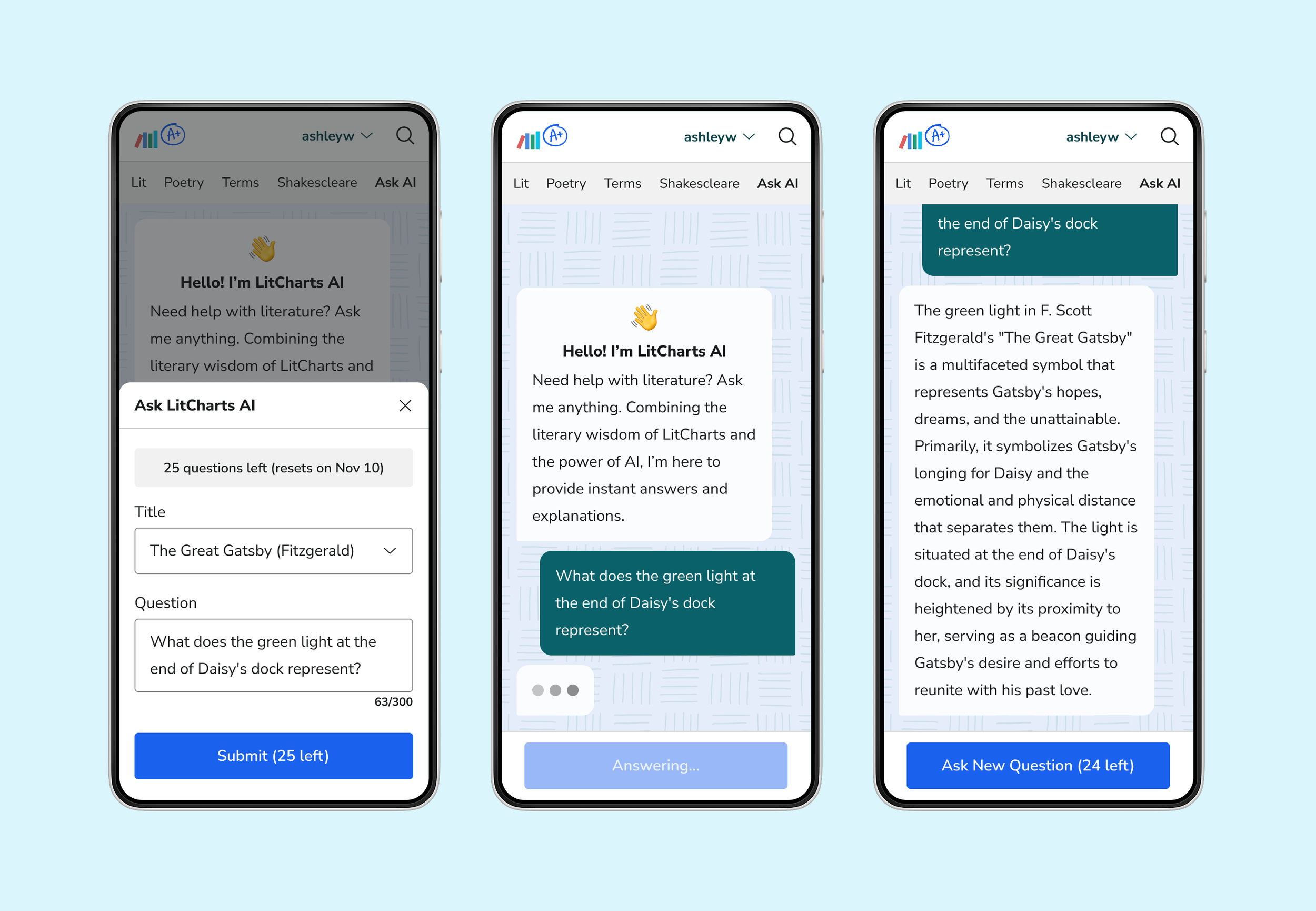 Led design strategy for LitCharts' first AI tool: the highest-converting and most responsive feature in company history.